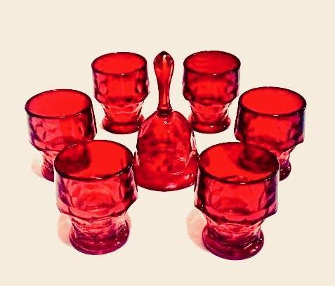GLASSES - Bar Drinking Glasses - RED (Set of 6+1 Bell) - household...