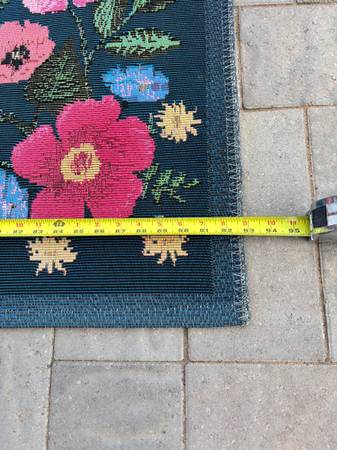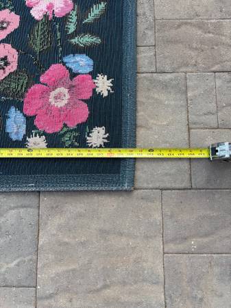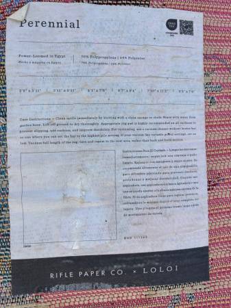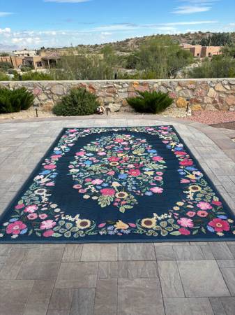 Outdoor Rug, made by Rifle Paper Co., Perennial model. 7’10”x11’10”. It’s used but in good condition. Cost $280 new, $80 CASH.