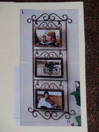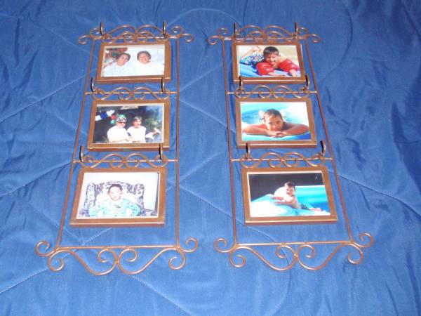 There are two of these scrollwork triple frames available for sale. Each is $30, cash only. This unique iron design has three removable frames hung on brackets, so your photos stand out from the wall. Each holds a 4" x 6" photo, protected under glass. Approximately 11.5" x 27". Give prominence to your special photos and handsomely decorate your wall. You may buy one or both of these triple frames. Call or text 832-454-2two14 if interested in buy one or both of these wonderful items. CONSIDER THEM AVAILABLE UNTIL POST IS DELETED.