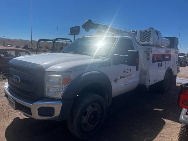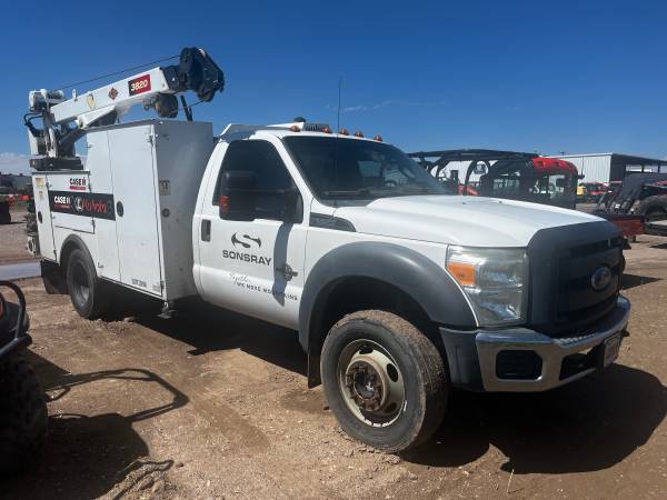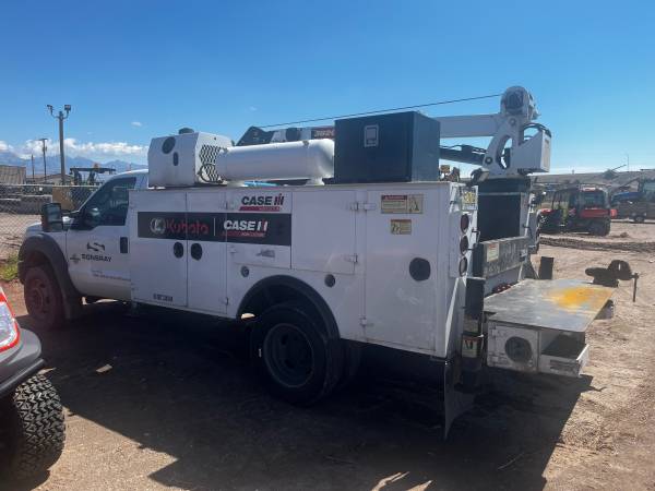 6.7 Powerstroke Diesel 4X4, 270,133 miles, IMT Truck Bed with Hydraulic driven IMT 3820 crane, Hydraulic driven Air Compressor, Wireless Remote, Hydraulic Outriggers, Hydraulic Pump driven by Truck PTO. Truck runs good. Has small oil leak on engine and from the PTO pump.