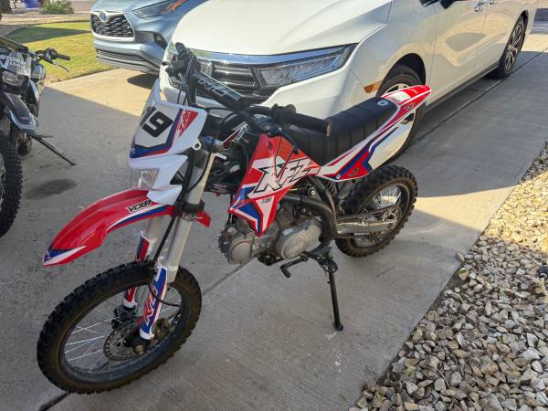 100cc Amazon dirt bike, less than 50 miles, needs a rear flat repair. Kick start only. Not street legal. Honda motor chinese copy.