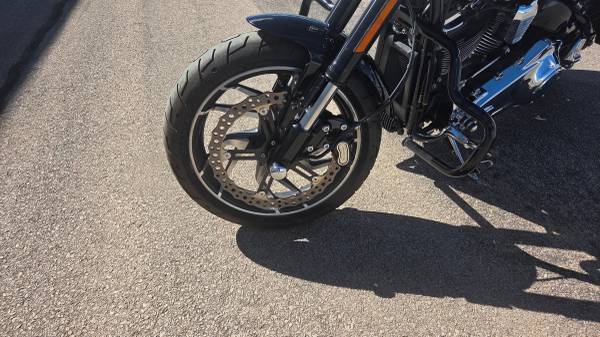 Harley Sport Glide with all the desirable add-ons and low low mileage. Perfect condition but with a salvage title due to a low speed tip over. All cosmetic blemishes have been repaired with replacement parts. No frame, suspension, engine or drive train damage. Milwaukee 8 engine with 107 cubic inches. Smooth and powerful! Only 2256 miles!