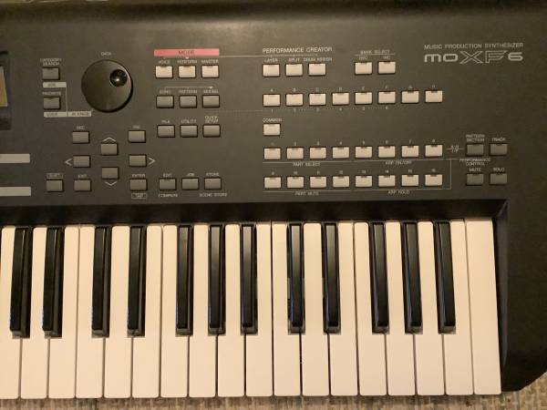 Yamaha MOXF6 61 key synthesizer workstation in excellent condition, only used in my studio. USB/MIDI in/out/thru, built in audio interface. Hundreds of great sounds, all totally tweekable. Includes power supply and owners manual. Cash only. For more information call or text Rob @ nine7zero3nine4forty9twenty.