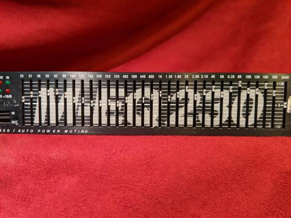 Each channel features 30 bands of 1/3rd octave equalization with ANSI and ISO standard center frequencies.adjusted by a center detented fader withand a master fader controls system gain for that channel. Clip andsignal present LEDs, as well as a bypass switch, are alsoprovided on each channel.Inputs and outputs for each channel are via both 1/4" and RCAjacks. The unit can also be rack mounted in only 1 rack space.FEATURES• 2 complete 30 band 1/3 octave equalizers in 1 rack space• Power up delay circuitry protects speakers by eliminating turn-ontransients•12dB boost or cut per band• Each channel can be bypassed individually• Clip and signal present LEDs for each channel• Inputs and outputs via both 1/4" phone and RCA jacks