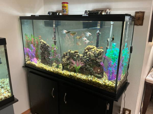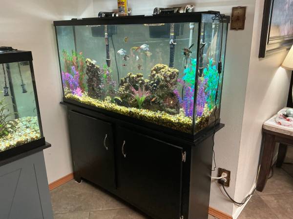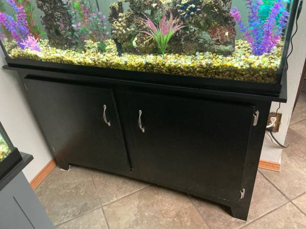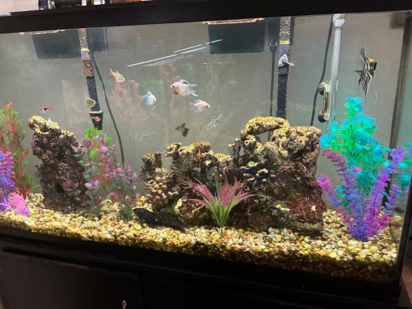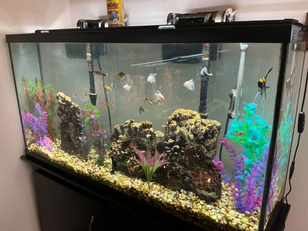 Beautiful 55 gallon aquarium with stand, fish, LED lights, plants, decorations, and filters. $450.00