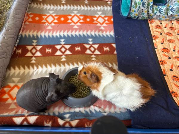 I’m rehoming two guinea pigs they are a bonded out both males I’m asking for a reasonable rehoming I’m willing to negotiate a price for them they come with their set up and hay. Make skinny pig and...