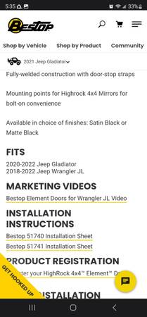 2020-2022 Jeep Gladiator 2018-2022 Jeep Wrangler JL HIGHROCK 4×4 ELEMENT DOORS. matte black brand new, never used! Front driver and passenger doors only! Asking $400 OBO no hardware included just...