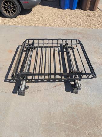 Roof Basket with universal roof rails. They allow you to mount it on the roof of some cars that don't have factory rails. Good condition. Asking $60