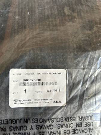 For sale is a new (still in plastic) factory set of Subaru Ascent Touring Carpet Floor Mats OEM 2019-2024 Brown Black, Part Number J505SXC010. $25 firm. Text preferred. Thanks for looking.