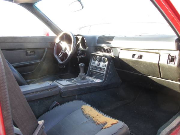 The grey car is a 1984 manual trans, black interior, parts car. It does not run, has no title and no keys. It was a landlord surrender. It is complete but a few of the parts have been harvested for the red car. It has the super rare Sport seats, and phone dial wheels. Engine is not locked up but condition is unknown.