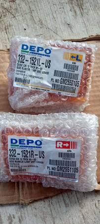 The product is a right side and left side signal light for a 1992-1993 Chevy Suburban Blazer or GMC Yukon. It is an OEM part with the brand DEPO and OE/OEM part number 3321521LUS. The housing color is chrome, the lens color is amber, and it is DOT-certified. Made in Taiwan, this signal light is designed for placement on the right side of the vehicle