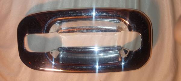 product is a plastic chrome door handle trim specifically designed for the right side (RH) of a vehicle. It comes with free shipping and a price of $8, making it a convenient and affordable option for car and truck owners looking to enhance the appearance of their vehicle. This trim is easy to install and can add a stylish touch to the overall look of the car or truck it is applied to.