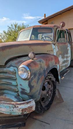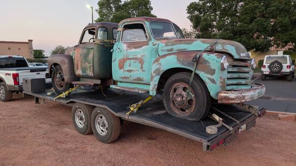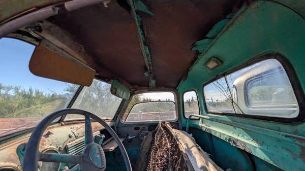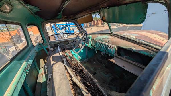 Highly sought after 49 Chevy 5 window cab, no motor or transmission. Was a farm truck in Colorado, so minimal rust. New, clear title in hand.