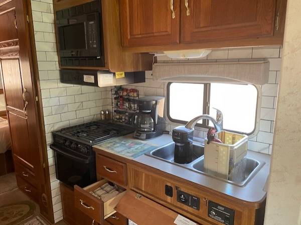 This unit has had many improvements since we bought it as well as safe and dependable. I had an AIR CONDITIONER and BACKUP CAMERA installed by the RV Dealer in Las Cruces and also had STEER SAFE installed. It is an amazing unit that really helps when you are driving down the road especially with tractor trailers coming down the road. As you may be aware the wind currents with the tractor trailers push you to the right and steer safe brings you right back. I really love it. We had ALL NEW TIRES INCLUDING THE SPARE replaced on the unit. The Unit was SERVICED before we left last year on our trip out to Pennsylvania to see our grandchildren. The ROOF was also RESURFACED so there are no leaks. The interior was done by the previous owner who did a beautiful job so everything inside looks like new. We also had the TRANSMISSION FLUID CHANGED as well as an OIL CHANGED and checked out mechanically so no breakdowns. This unit was actually checked out twice once before we left on our trip last year and once before we returned from Pennsylvania to New Mexico so there are NO issues with this unit everything works. It's mileage is 48,486 which is very low. It also has a TV and soundbar in the unit. The bed in the back is a queen sized bed and the mattress was replaced with a very good one since the other one was too soft. Mechanically everything has been checked out and ready for it's next trip. Due to my condition since my accident with a tractor trailer hitting me I am not able to drive it and that is why it is up for sale. I bought it for $19,000 and have put $6500 back into it. This is a sound unit and you are welcome to check it out. There are no issues. Currently, this unit is still winterized. This is a beautiful unit should you like to see it. She is a cutie. Call me with any questions at 602-370-3940. Thanks for looking.