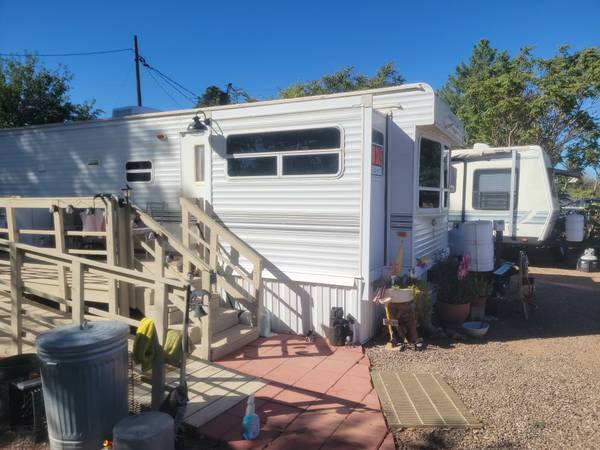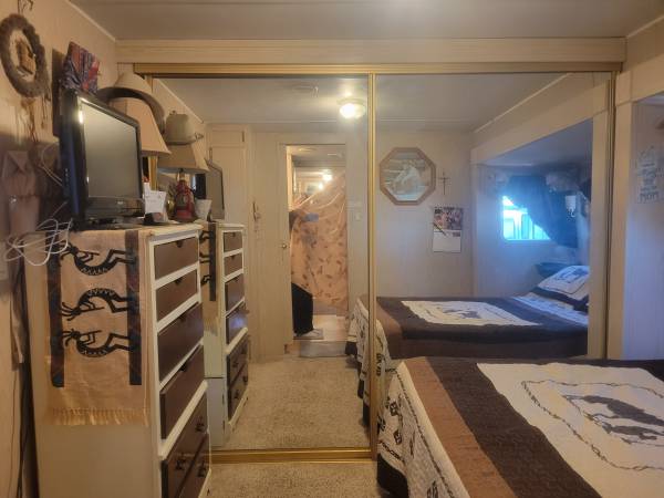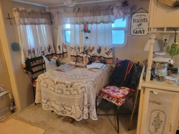 Set in park in Deming, NM, low space rent, comes with some furniture. Dinette w/2 chairs. No under storage in bedroom will have frame and boxsprings, & white & brown chest of drawers