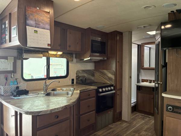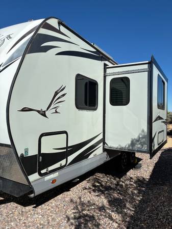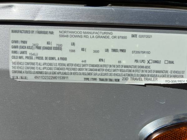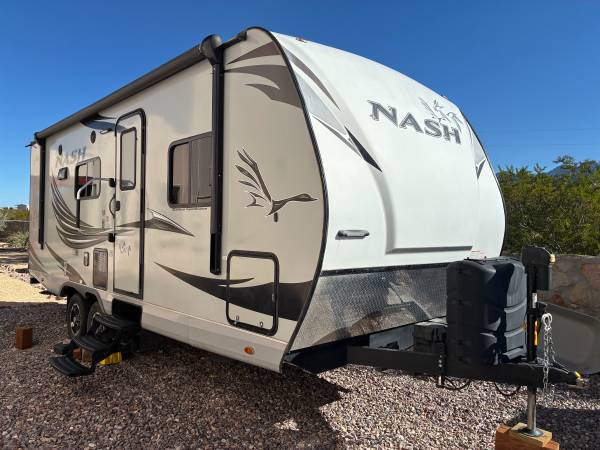 2021 Nash 23D 4 season camper; 23' . Great couples trailer; very spacious with a ton of storage. All the usual stuff such as TV, 2 door refrigerator, 3 burner stove and oven, queen bed, wrap around dinette, bath & shower. 50 gallon fresh water tank, 30 gallon grey tank, 30 gallon black tank, 10 gallon hot water heater (gas or electric). everything works well (in fact we have never had a failure since we purchased it). extremely well made and reliable. Pulls great with our 1/2 ton truck. Purchased it to live in while we looked for house in Las Cruces.