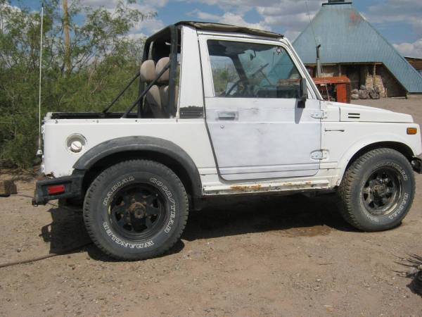 1987 Suzuki Samurai. Upgraded to Toyota carburetor. Runs great. Clean NM title.