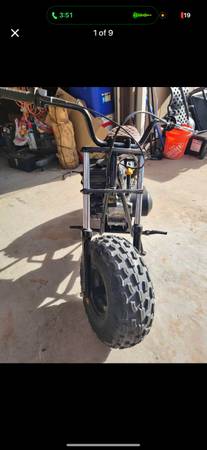 Built mini bike on big frame, tons of expensive parts. -macuni carb -governer delete - torque converter -pro taper bars -electric start -20x8 tires -cafe racer seat Have gotten it up to 65mph