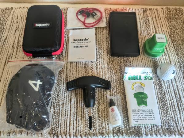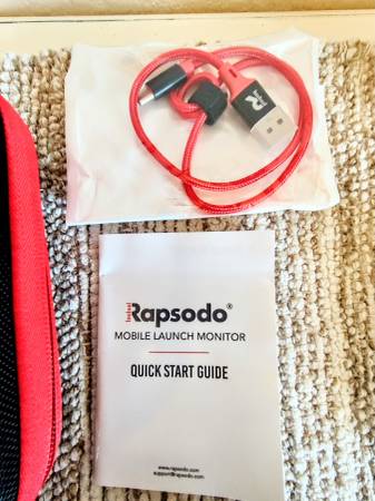 Up for sale is a Rapsodo mobile launch monitor. Monitor is in excellent condition and works. Monitor comes with a golf stamp kit, golf ball, a set of 8 golf club covers, the carrying case for the monitor, charging cable for the monitor, original instructions and a PXG torque wrench.