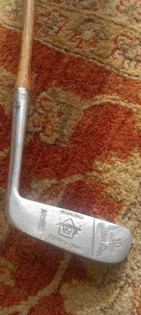 leather grip excellent, chrome wear on HOZLE, face and back, shaft has a bow to it ( maybe perfect for the tall duffer) I would play or display.The DUBOW SILVER CUP Vintage Golf Club Putter is a classic piece of golf equipment with a 34" hickory shaft and a right-handed design. Made in the United States, this putter features a stiff flex and is ideal for both male and female golfers. The vintage design, combined with the brand's reputation, makes this club a valuable addition to any golf enthusiast's collection.