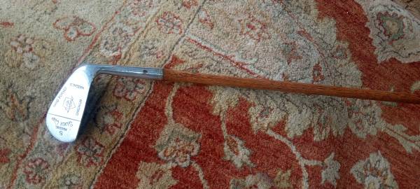 LOOKING GOOD GRIP,SHAFT, HEAD, The product is an antique hickory shaft golf club, specifically a 5 iron mashie. It is designed for right-handed male golfers and is considered vintage, adding to its historical and collectible value. The hickory shaft reflects the old-school craftsmanship of early golf clubs, making it a unique and sought-after piece for golf enthusiasts and collectors alike