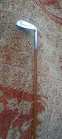 STRAIGHT SHAFT, AVERAGE WEAR ON FACE AND BACK, HOZLE AND SHAFT STRONG, LEATHER GRIP EXCELLENT FOR PLAY OR DISPLAY The product is a vintage Wright & Ditson A8 iron golf club with a 37.5" hickory shaft, designed for right-handed players. This club is a piece of sporting goods history, made in the United States with a stiff flex for precise shots on the golf course. Its classic design and high-quality materials make it a valuable addition to any vintage golf equipment collection.