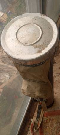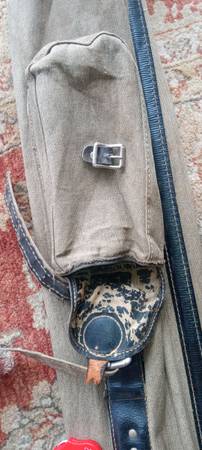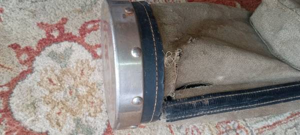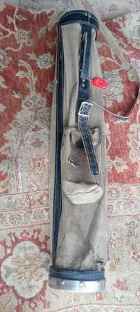 TEAR NEAR BOTTOM (REPAIRABLE ) HAND AND SHOULDER STRAP STILL WORK,BALL POUCH NEES A NEW BUCKLE This vintage golf bag from the 1940s to 1950s is made of leather with a metal base, giving it a sturdy and classic look. The carry style bag features a zip closure and leather straps, perfect for carrying your golf clubs while out on the course. The fair condition and $25 price make it a valuable find for golf enthusiasts looking for a unique and stylish way to transport their equipment.