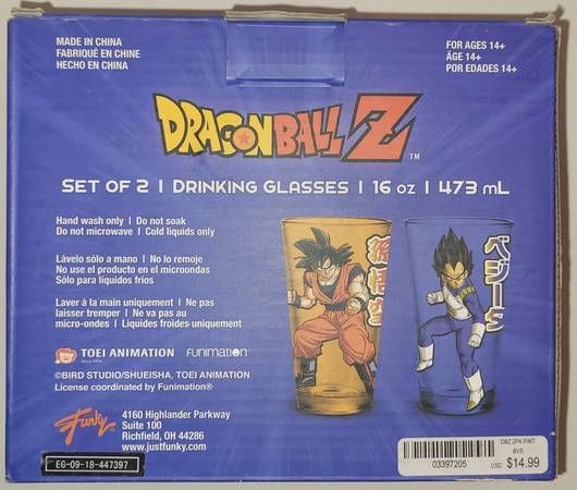 The Dragon Ball Z - Goku & Vegeta Pint Glasses set is a collectible item perfect for fans of the popular anime series. Made from glass, these pint glasses feature iconic characters Goku and Vegeta from the Dragon Ball Z franchise. These glasses are a unique addition to any Dragon Ball fan's collection, making it a must-have item for those who enjoy the series. Cheers to the legendary heroes with this stylish and practical set of pint glasses.