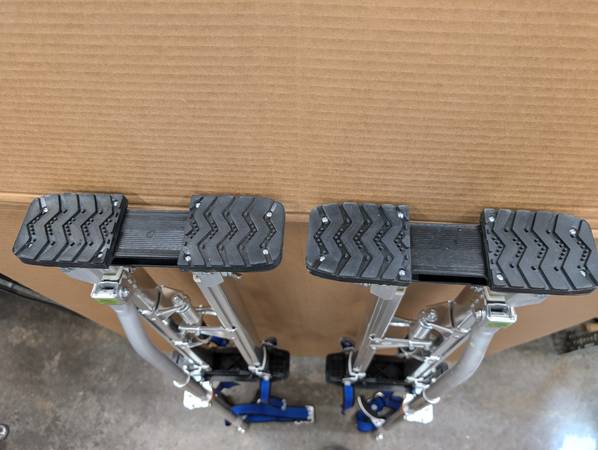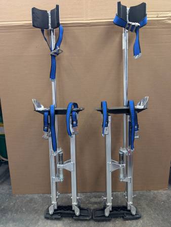 This is a like new set of 24-40” Pentagon Tools Professional Drywall Stilts. I bought these for myself, but quickly learned that there was a lot of skill required and that I should probably just stick with my trusty ladder. For someone who is accustomed to using stilts, willing to put in the time to learn, or just naturally acrobatic, these are a good quality set. They also come fully assembled, which is a bigger deal than one might expect.