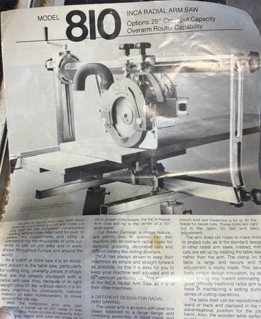 I have inherited this Inca Radial Arm Saw. Looks to have been assembled but not used much at all. It is in perfect shape. I can deliver within the Las Cruces area. If you would like to see it, I...