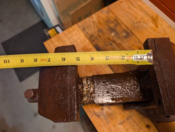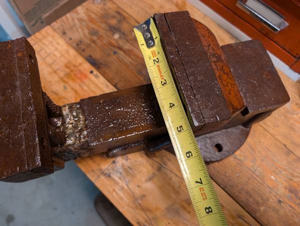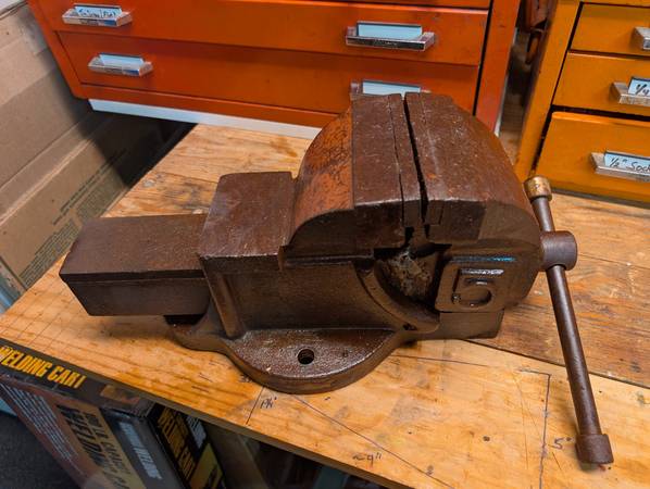 Beast of a bench vise. Lots of hard working history. Anvil top is in great shape. Jaws are the replaceable type.