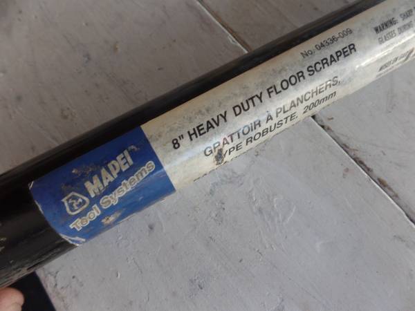 Mapei floor scraper. Heavy weight really removes spilled paint, drywall texture, etc. Used on one small tile job, then put away. Paid over $40 new, asking $20.