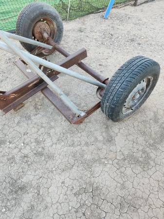 Former Mobile Gantry. No lift jack or Gantry Arm. Can be used for another project. Replaced one tire. 2" Hitch 4 Lug drop axle. Low axle set up. $145