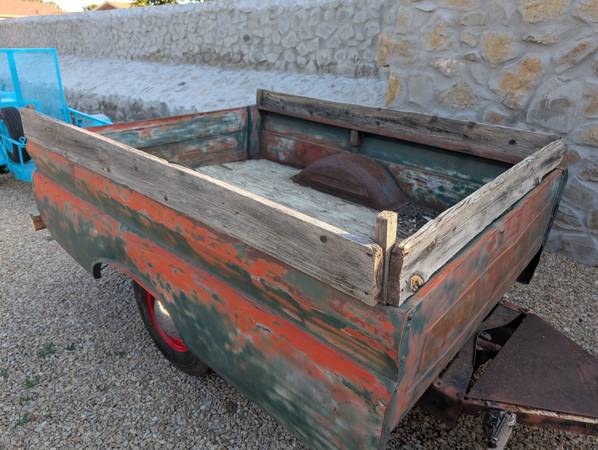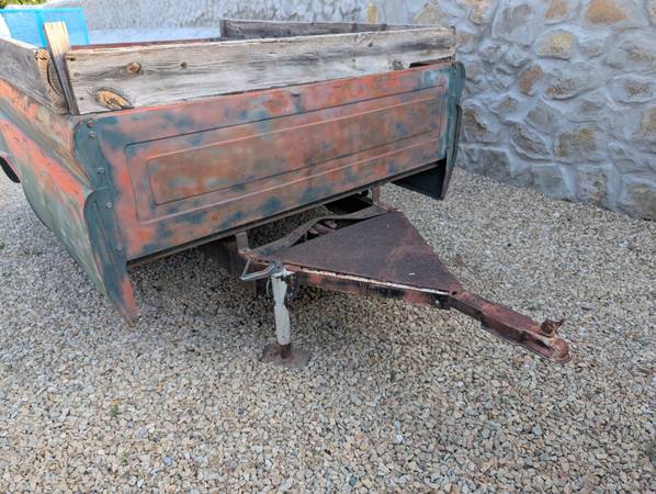 For Sale: 1966 GMC Long Bed Trailer. It has Steelie Wheels and New Baby Moon Hubcaps plus a Spare tire. Use for a Restoration Project or a Cool Trash Hauler. No Title, Bill of Sale. Just $750.00, Please call or text me at show contact info