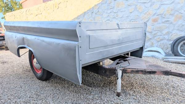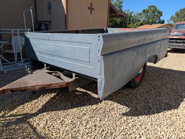 For Sale: 1966 GMC Long Bed Trailer. It has Steelie Wheels and New Baby Moon Hubcaps plus a Spare tire. Use for a Restoration Project or a Cool Trash Hauler. Bill of Sale only. Just $650.00, Please call or text me at show contact info