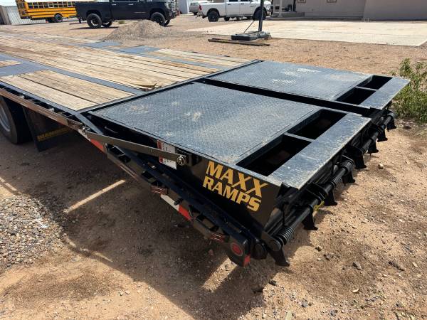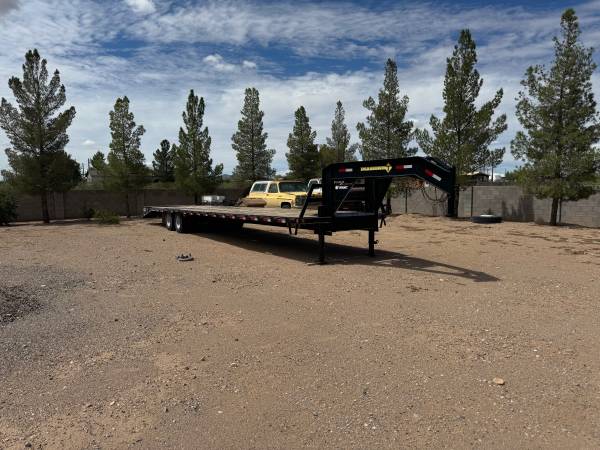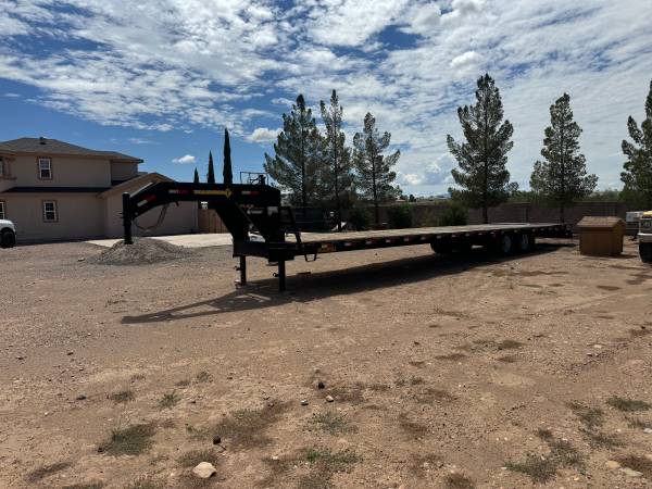 2022 Diamond T gooseneck flatbed trailer, dual tandem axles, 10k axles, has new 14 ply tires, oiled hubs, tool box on front of trailer, mega ramps, GVWR 24,000 pounds, Hardly ever used. OBO