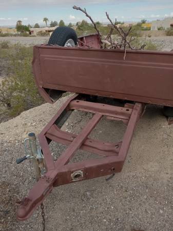 3/4 ton pickup bed trailer. Good tires, new hitch stand, no lights, no title, Can be registered as hand made. Pulls straight, good brush hauler or utility trailer. It is ugly but functional. Text 505-three 5 zero, 2 99 one. Located in Las Alturas area.