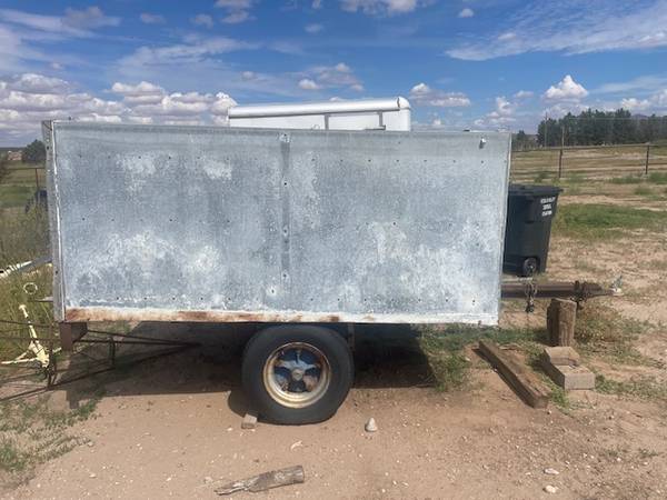 Trailer for sale. Great for hauling trash to the dump, etc. 7' x 8' x 42", 1 7/8" hitch. Mobile home axel and tires, homemade, no title.