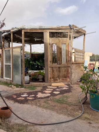 Structure holds a pond and plants