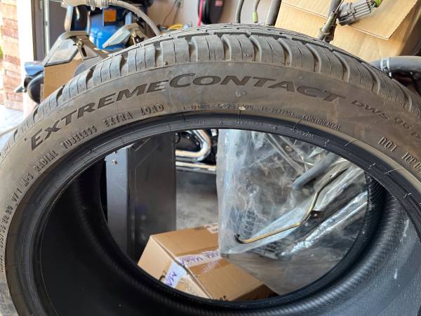 Up for sale are two (2) Continental DWS 06 high performance all-season tires in 255/35/20. Less than 500 miles on them. Didn’t work for my application so they need to go. Paid $275 each so my loss is your gain. October 10, 2022 date code (4122). Cash is king, no trades/lowball offers, don’t need help selling. Email or text only. 5 seven five 64 oh nine7 oh 4.