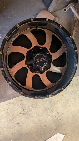 Set of 4 insane Off-road wheels. 20x10 -24 offset. (NO TIRES) Selling as is. They have a few scratches and scrapes. Universal lug pattern. Call or text 575 Seven 7 Seven .07 one seven